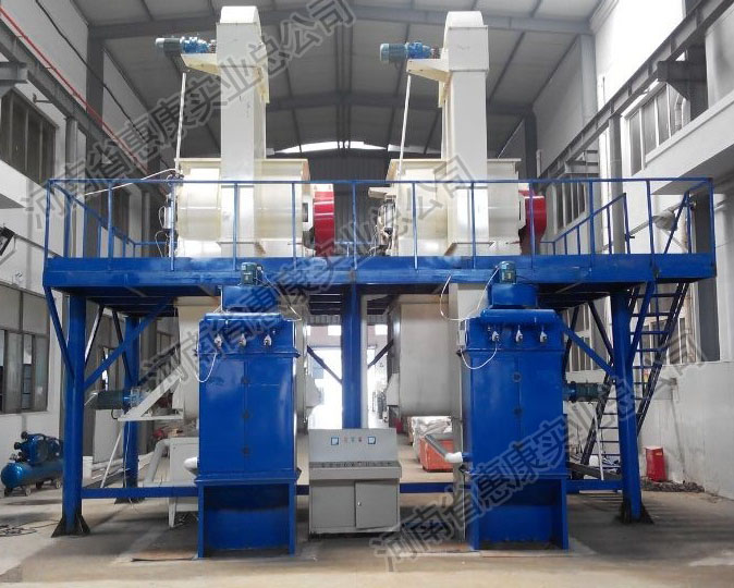 雙機型生產線是在節(jié)能型生產線的基礎上經(jīng)過改進而成,兩套生產線共用一套完整的鋼架平臺,結構更加緊湊,兩套生產線獨立控制,互不影響,成倍提高產量的同時,節(jié)省資金投入。 總裝機功率80KW左右,設備占地面積50㎡,設備總高6米,廠房要求6.5m以上,生產所需工人4-6人,日…