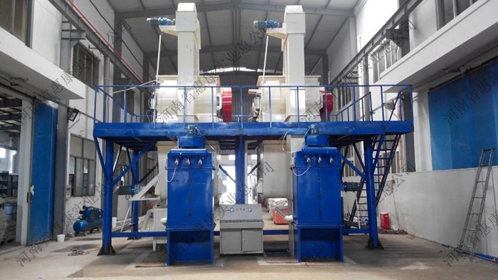 雙配套生產(chǎn)線是在節(jié)能型生產(chǎn)線的基礎(chǔ)上經(jīng)過改進(jìn)而成,兩套生產(chǎn)線共用一套完整的鋼架平臺,結(jié)構(gòu)更加緊湊,兩套生產(chǎn)線獨立控制,互不影響,成倍提高產(chǎn)量的同時,節(jié)省資金投入。 總裝機功率80KW左右,設(shè)備占地面積50㎡,設(shè)備總高6米,廠房要求6.5m以上,生產(chǎn)所需工人4-6人,日產(chǎn)…