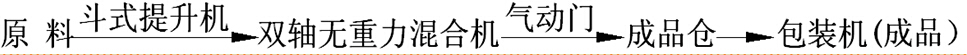 節能型生產線,由脈沖除塵器、斗式提升機、雙軸無重力混合機(含飛刀組)、成品倉(含二次攪拌)、自動定量包裝機(閥口式&敞口式)、鋼架平臺、空壓機、氣路系統、電氣控制柜等組成的中型流水作業體系。