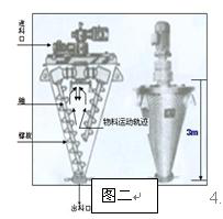 該類型機器具有錐形機體,通過雙軸雙螺帶將各種生產(chǎn)原料向 不同的角度推動達到混合均勻的效果,避免了死角、混合均勻 度高,無殘余(圖二)