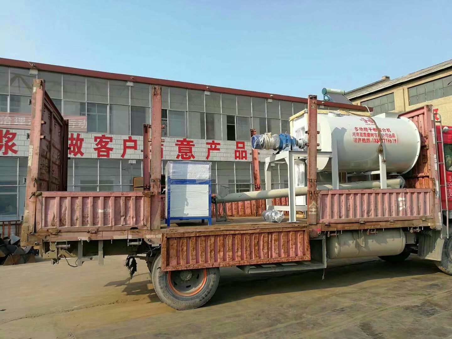收獲的金秋季節來了,站在8月的尾巴上,我公司給客戶張總發了一套多功能膩子粉攪拌機。