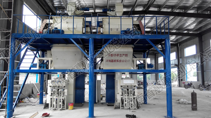 全自動生產線是在節能型生產線基礎上增加原料儲存系統、配料系統、待混系統、成品灌裝系統、人機交互控制系統等構成的智能化流水作業體系。 生產工藝如下: 生產前只需將配方輸入智能化控制系統后,按一下啟動按鈕,程序自動完成原料的配比、物料的提升、攪拌,攪拌均勻后…